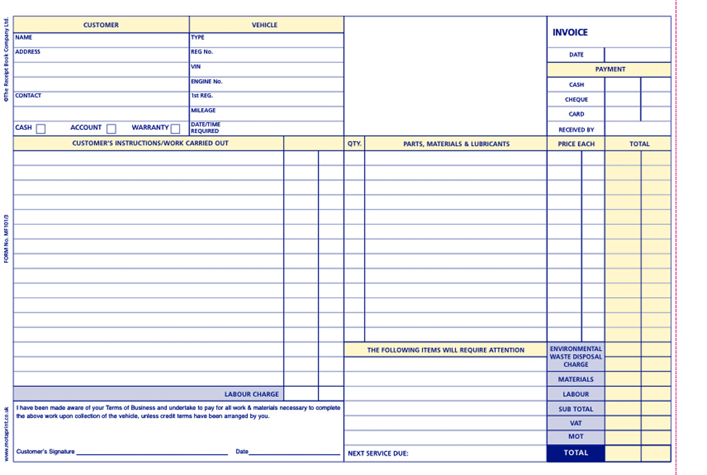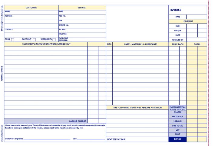 Customer copy, office copy and job card all in one!